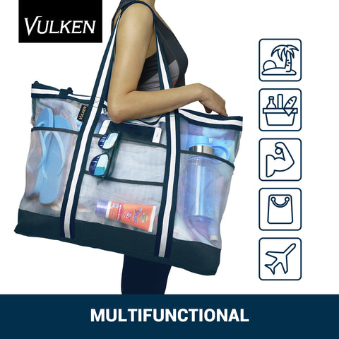 • Sand-proof Bottom Design: The bags bottom helps keep the sand/water away from your items when you put your Vulken beach bag on the sandy or wet surfaces.