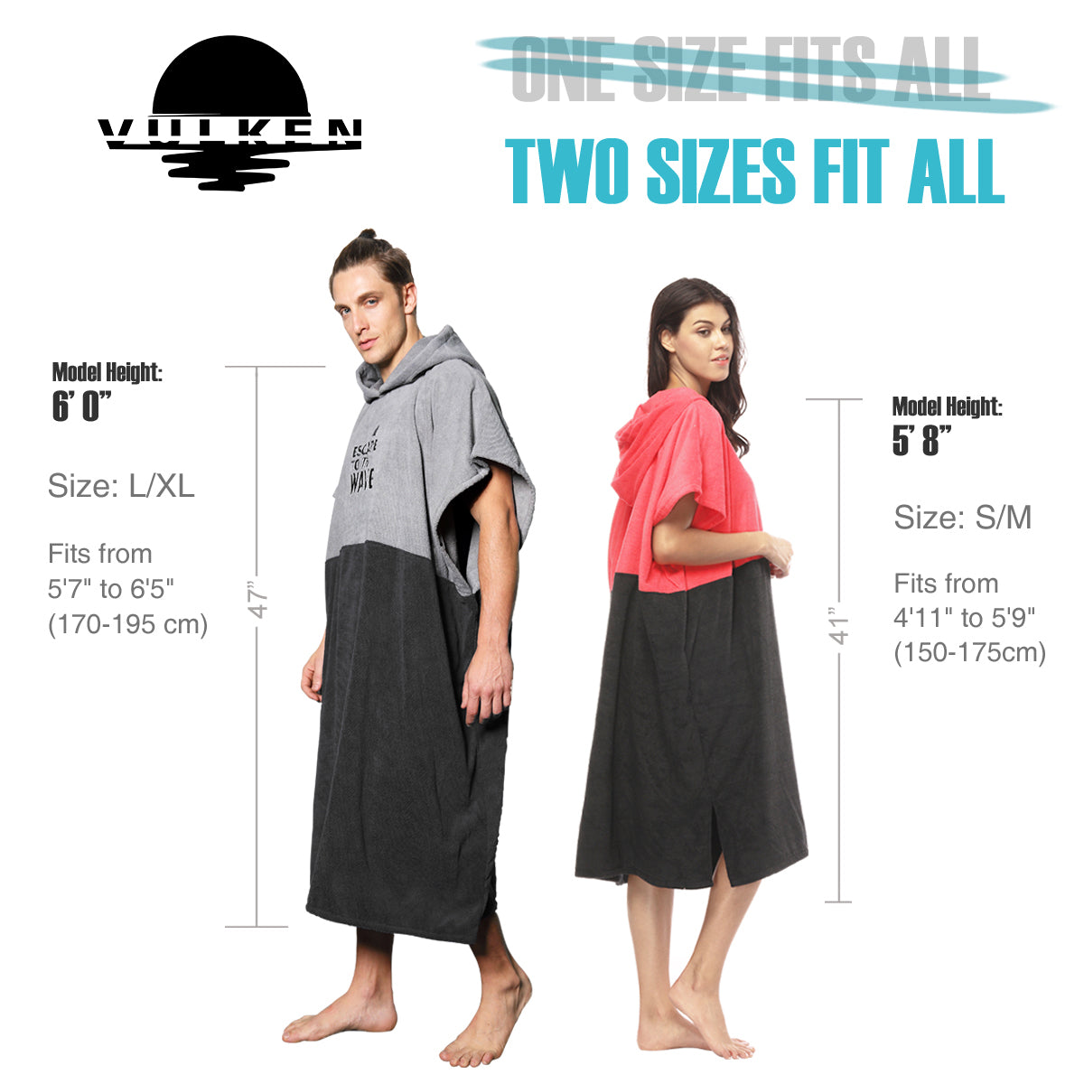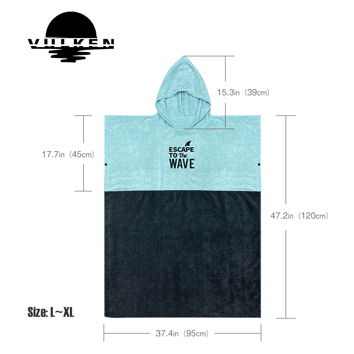 Use the snap buttons at both sizes to ensure privacy during change. Extra Large hood aids in hair drying.