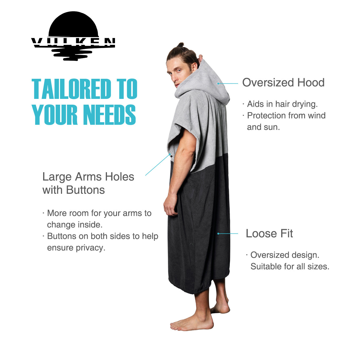 Tailored to your needs to allow changing underneath comfortably, to dry off and keep warm from wind chill after water activities.