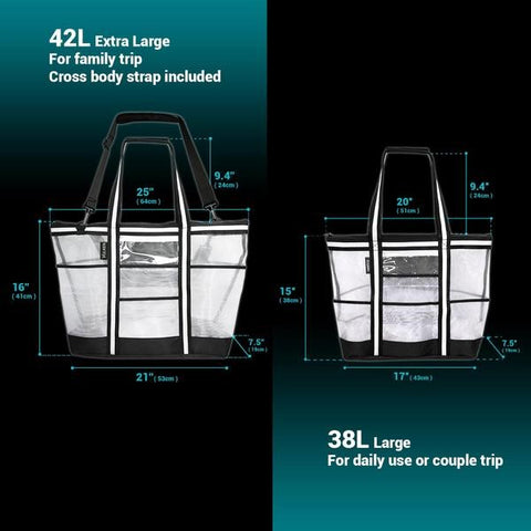 - Extra Large with Zipper Top Closure: More capacity with the size L 23” x H 16” x W 7.5" big enough for the whole family’s beach/pool trip essentials!